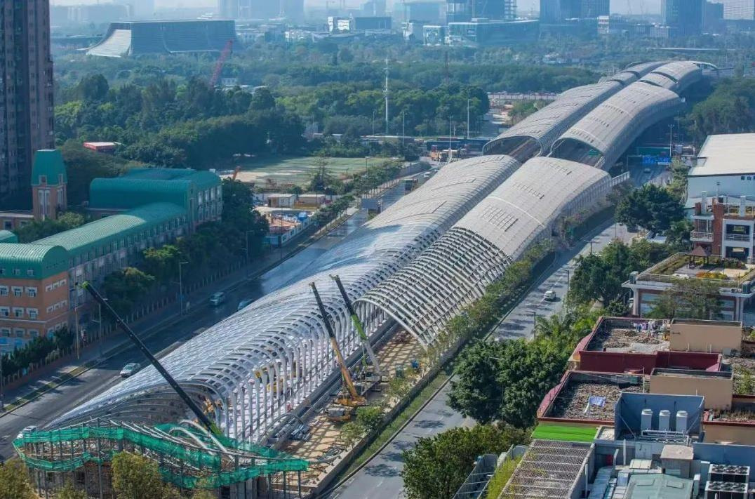 西侧隧道口采用拱形骨架寓意“腾飞的双翼”,与前海月亮湾跨线桥连成有机整体;